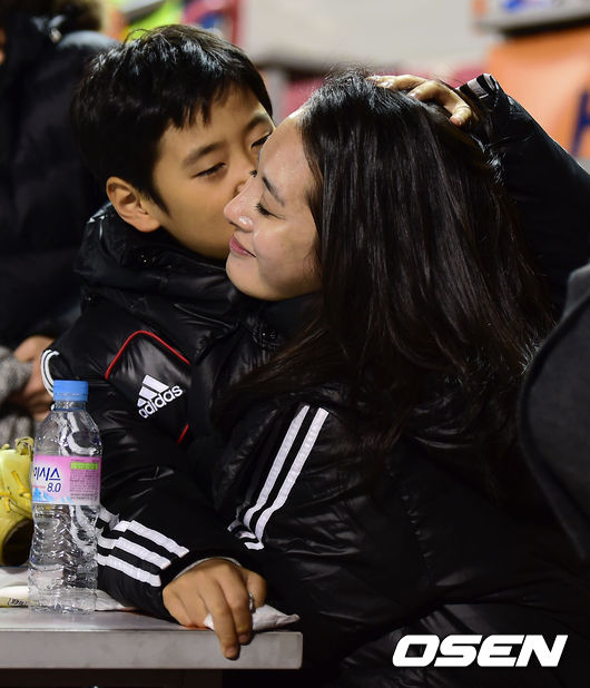 경기종료 후, 삼성 이승엽 아내 이송정이 아들로 부터 기쁨의 볼키스를 받고 있다./ouxou@osen.co.kr