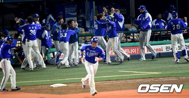 9회초 삼성 공격 2사 1루 상황 박한이가 역전 중월 솔로포를 날린 가운데 삼성 더그아웃 선수들이 환호하고 있다./dreamer@osen.co.kr