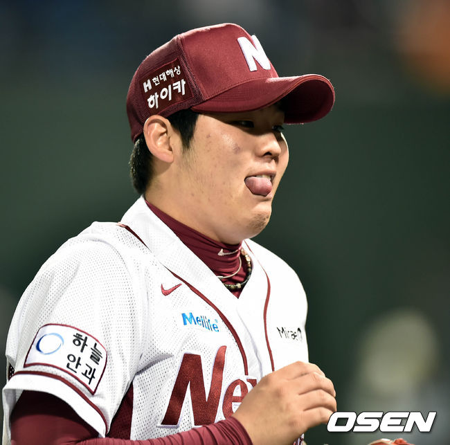 역전 투런홈런을 맞은 한현희가 애써 미소를 짓고 있다./spjj@osen.co.kr