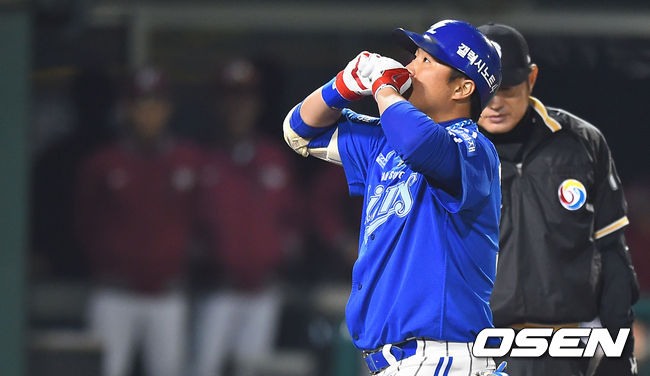 9회초 2사 1루 박한이가 역전 2점 홈런을 날리고 아내 조명진에게 세리머니를 하고 있다 /soul1014@osen.co.kr