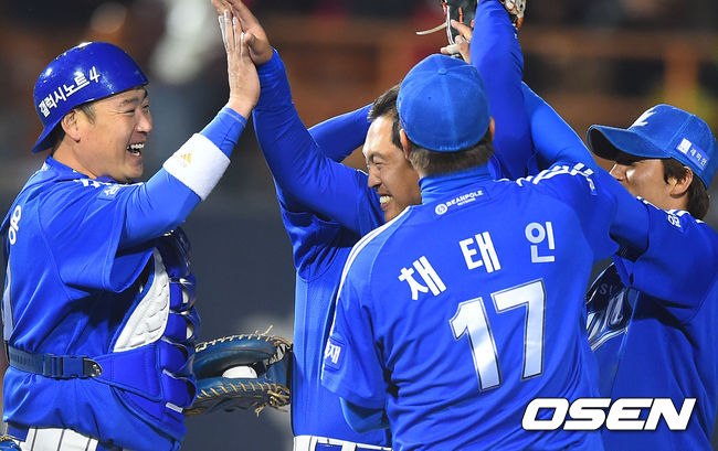 경기종료 후 삼성 선수들이 기뻐하고 있다 /soul1014@osen.co.kr