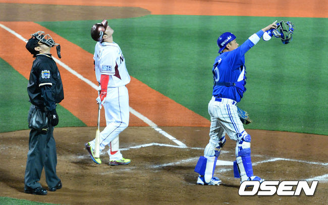 9회말 1사에서 넥센 박병호가 1루수 파울플라이로 물러나며 아쉬워하고 있다./jpnews@osen.co.kr