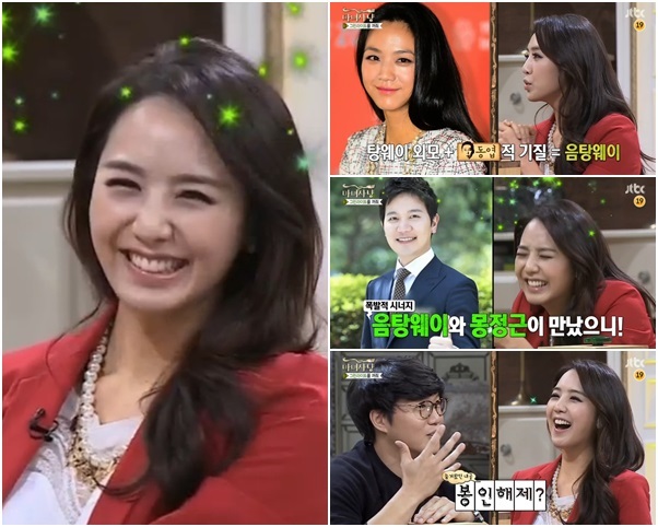 붉은색 재킷을 입고 화려한 화장을 하고 나온 그를 보고 MC 성시경은 “예전에 차분하고 단아한 느낌이었는데 전에 봤던 메이크업이 아니다”라고 지적했다. 확실히 아나운서다운 차분한 외모와는 달라 보였지만 전에 볼 수 없던 그의 매력이 부각되기도 했다. 외모 변신은 입담 변신으로도 이어졌다.