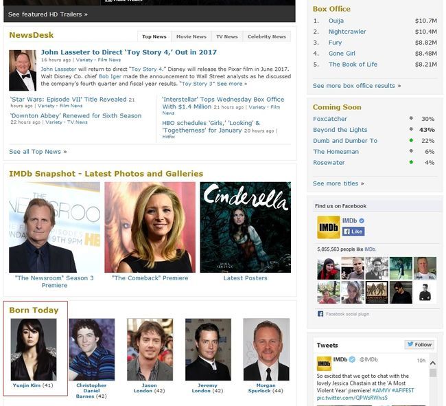 IMDB는 Internet Movie Database의 약자로 전세계 네티즌들이 애용하는 유명 영화 전문 데이타베이스. 이 곳에서 김윤진이 쟁쟁한 외국 스타들을 제치고 제일 먼저 이름을 장식한 것은 일면 의미있는 일이다. 김윤진은 '로스트'에서 눈도장을 찍은 이후 '미스트리스' 시리즈에서 주연을 꿰차며 미국 시청자들을 만났다. 현재 미국과 한국을 오가며 활발히 활동 중이다.