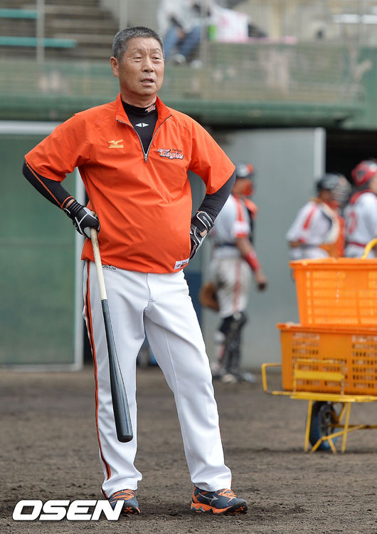 8일 오전 일본 오키나와 고친다 구장에서 한화 이글스 2014 마무리 캠프가 진행됐다. 김성근 감독이 직접 펑고를 치며 안타까워 하고 있다.