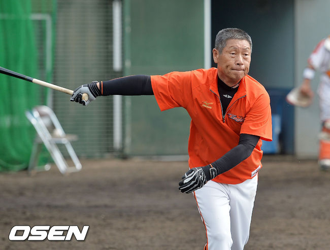 8일 오전 일본 오키나와 고친다 구장에서 한화 이글스 2014 마무리 캠프가 진행됐다. 김성근 감독이 한화 부임 후 처음으로 직접 펑고를 치고 있다.