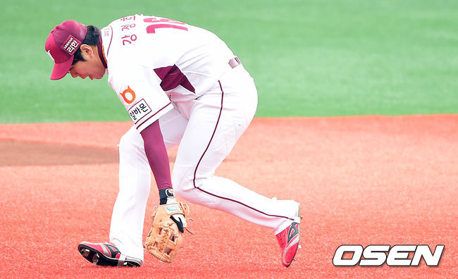 1회초 삼성 공격 2사 주자없는 상황 채태인의 내야 땅볼 타구를 넥센 유격수 강정호가 잡아내고 있다.