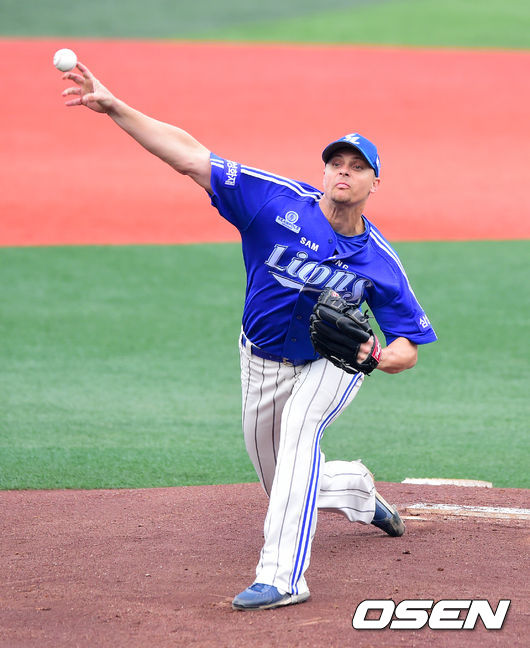 8일 오후 서울 목동야구장에서 열린 '2014 한국야쿠르트 세븐 프로야구 포스트시즌' 넥센 히어로즈와 삼성 라이온즈의 한국시리즈 4차전, 1회말 삼성 선발 마틴이 역투하고 있다.