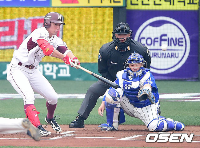 1회말 넥센 공격 선두타자로 나선 서건창이 좌전안타를 날리고 있다.