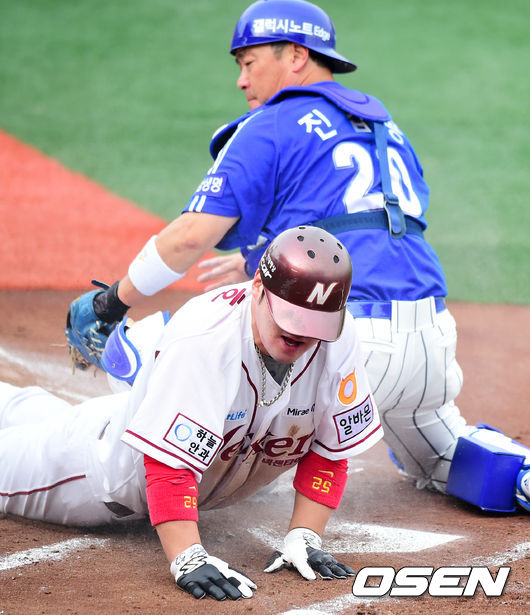 8일 오후 서울 목동야구장에서 열린 '2014 한국야쿠르트 세븐 프로야구 포스트시즌' 넥센 히어로즈와 삼성 라이온즈의 한국시리즈 4차전, 1회말 2사 2루에서 넥센 박병호가 강정호의 3루땅볼에 삼성 박석민의 악송구로 홈까지 내달리며 세이프되고 있다.