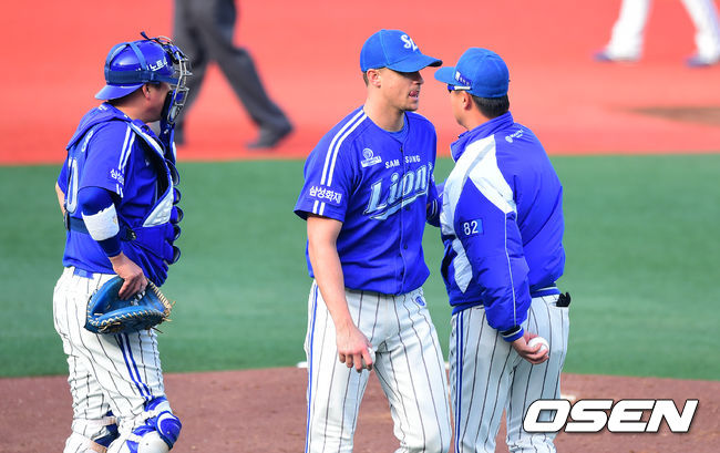 8일 오후 서울 목동야구장에서 열린 '2014 한국야쿠르트 세븐 프로야구 포스트시즌' 넥센 히어로즈와 삼성 라이온즈의 한국시리즈 4차전, 2회초 1사 1,2루에서 삼성 선발 마틴이 강판당하고있다.