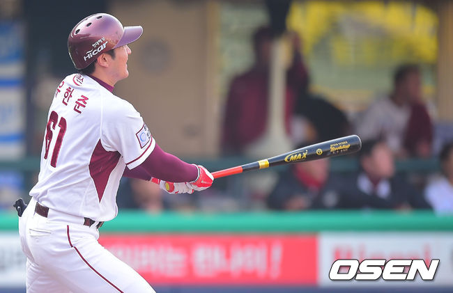 8일 오후 서울 목동야구장에서 열린 '2014 한국야쿠르트 세븐 프로야구 포스트시즌' 넥센 히어로즈와 삼성 라이온즈의 한국시리즈 4차전,2회말 2사 1,2루 넥센 유한준이 3점 홈런을 날리고 있다.