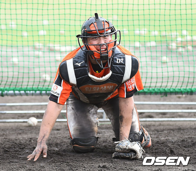 8일 일본 오키나와 고친다 구장에서 한화 이글스 2014 마무리 캠프가 진행됐다. 지성준이 펑고 훈련을 받으며 외치고 있다.