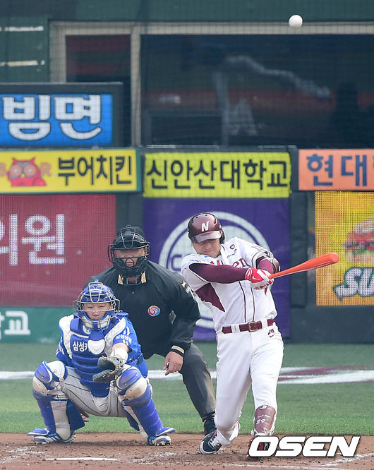 4회말 넥센 공격 2사 1루 상황 이택근이 달아나는 좌월 투런포를 터트리고 있다.