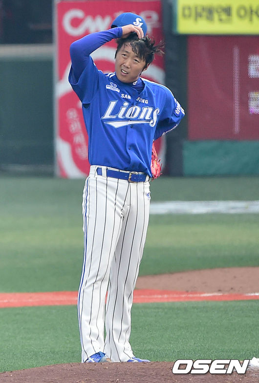4회말 넥센 공격 2사 1루 상황 이택근에게 달아나는 좌월 투런포를 허용한 배영수가 아쉬워하고 있다.
