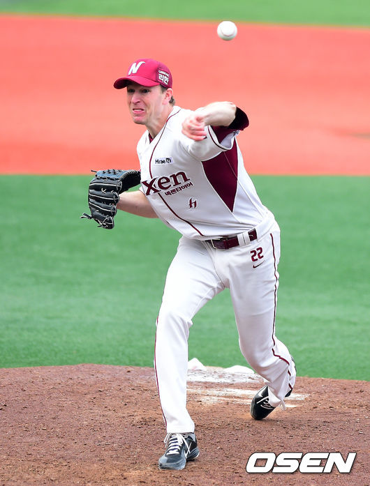 8일 오후 서울 목동야구장에서 열린 '2014 한국야쿠르트 세븐 프로야구 포스트시즌' 넥센 히어로즈와 삼성 라이온즈의 한국시리즈 4차전, 6회초 넥센 밴헤켄이 역투하고 있다. 밴헤켄은 6회까지 퍼펙트.