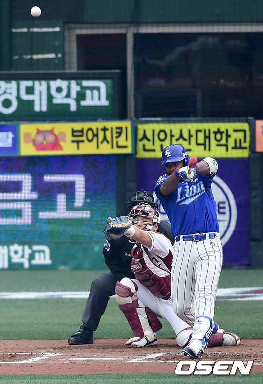 7회초 삼성 공격 선두타자로 나선 나바로가 추격의 중월 솔로포를 날리고 있다.