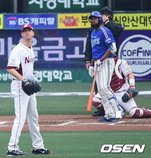 7회초 삼성 공격 선두타자로 나선 나바로가 넥센 선발 밴헤켄을 상대로 추격의 중월 솔로포를 날리고 타구를 바라보고 있다.