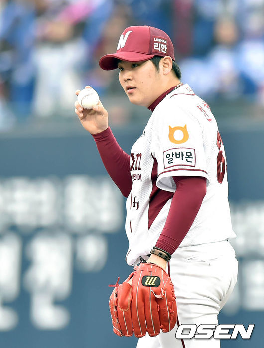 8일 오후 서울 목동야구장에서 열린 '2014 한국야쿠르트 세븐 프로야구 포스트시즌' 넥센 히어로즈와 삼성 라이온즈의 한국시리즈 4차전, 8회초 한현의가 밴헤켄에 이어 마운드에 올랐다.