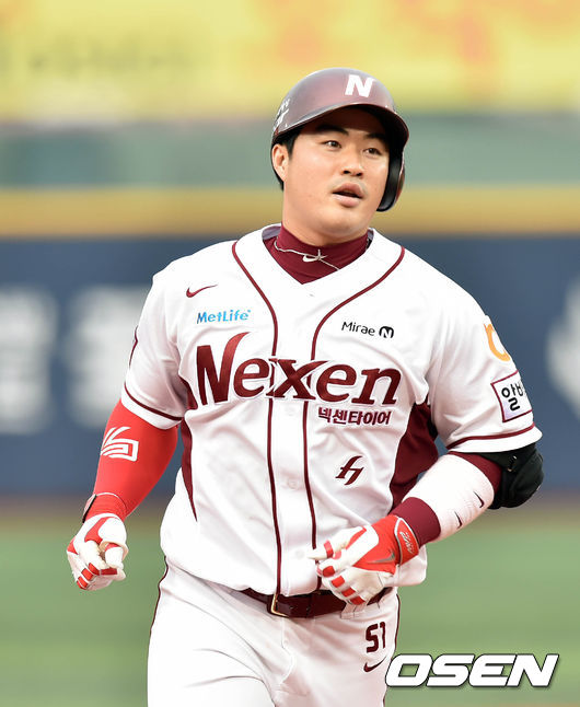8일 오후 서울 목동야구장에서 열린 '2014 한국야쿠르트 세븐 프로야구 포스트시즌' 넥센 히어로즈와 삼성 라이온즈의 한국시리즈 4차전, 8회말 1사 박현도고 차우찬으로 부터 솔로홈런을 치고 베이스를 돌고 있다.