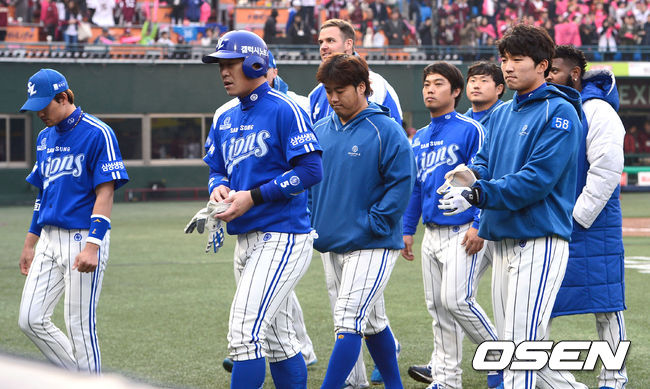경기종료 후 삼성 선수들이 아쉬워하고 있다. /soul1014@osen.co.kr