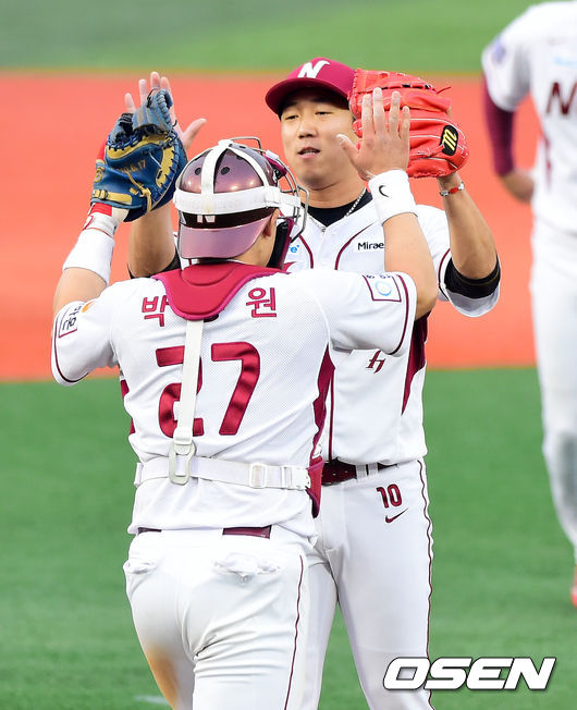 경기후 넥센 문성현, 박동원이 승리를 기뻐하고 있다./jpnews@osen.co.kr