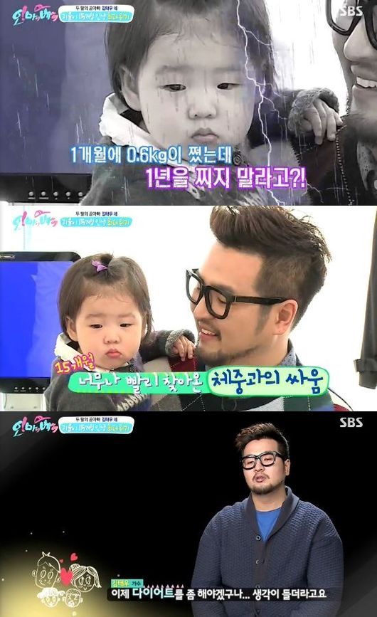 이에 김태우의 아내는 "조금 충격적이었다"고 말했고, 김태우는 "다이어트를 해야겠구나. 좀 덜 먹여야겠다. 나중에 원망 들을까봐 '왜 날 이렇게 키웠어'라고"라며 속내를 드러냈다.