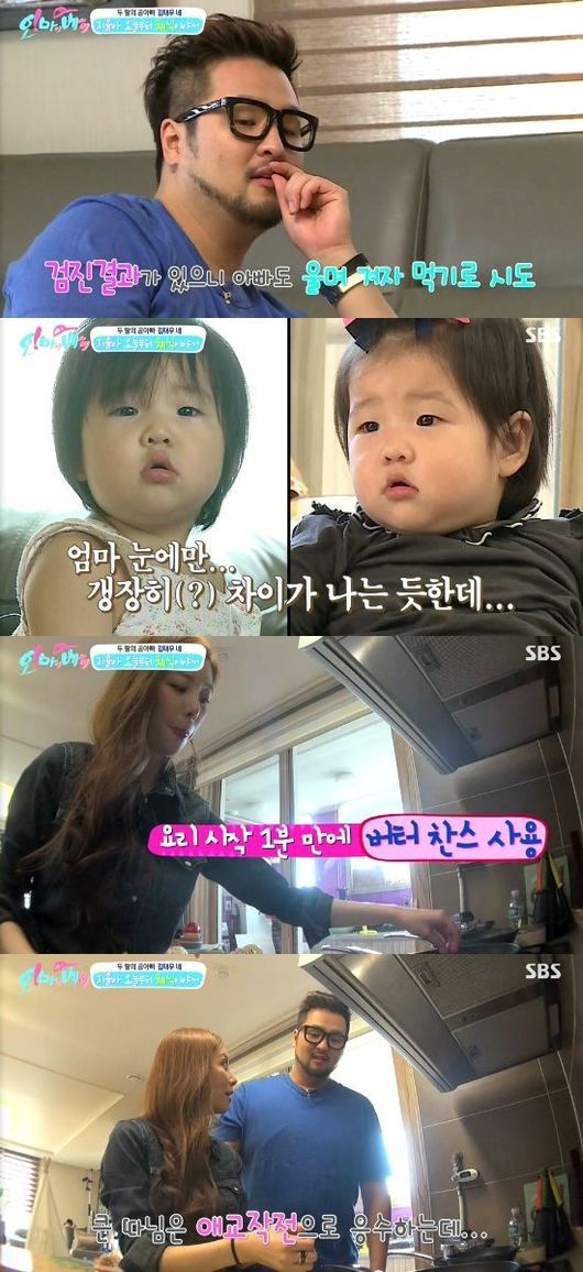 김애리는 8일 오후 방송된 SBS 예능프로그램 '오 마이 베이비'에서 딸 지율의 다이어트를 위해 채식을 준비하려했지만 유통기한이 지난 버터를 사용하는 등 실수를 했다.