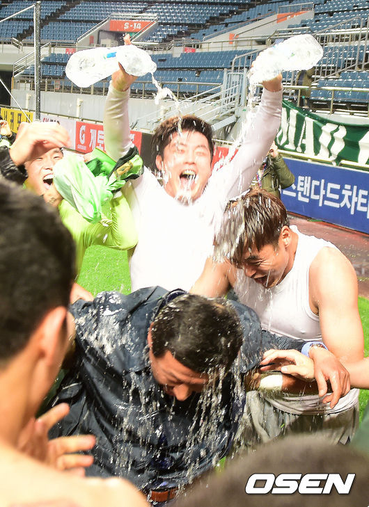 우승 거둔 최강희 감독,'우승 물 세례로 좋다'