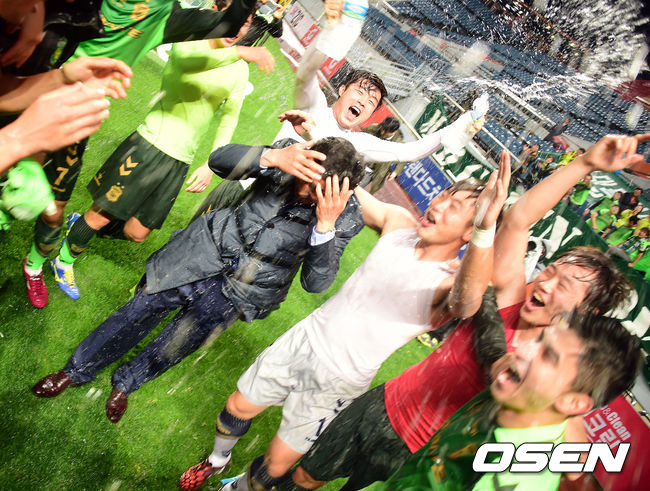 K리그 클래식 우승을 거둔 전북 현대 최강희 감독과 선수들이 기뻐하고 있다./ youngrae@osen.co.kr