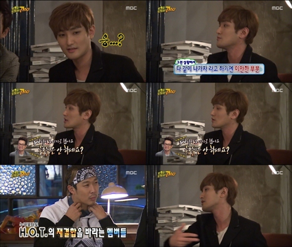 이날 강타는 "H.O.T도 재결합을 하겠다는 생각을 여러 번 하다가 무산된 적이 많았다. 시간도 안 맞고 의견 차이도 있었다"라며 "그런데 내가 이거 출연하니까 멤버들이 나오라고 하기엔 미안한 마음이 있다"라고 말했다.