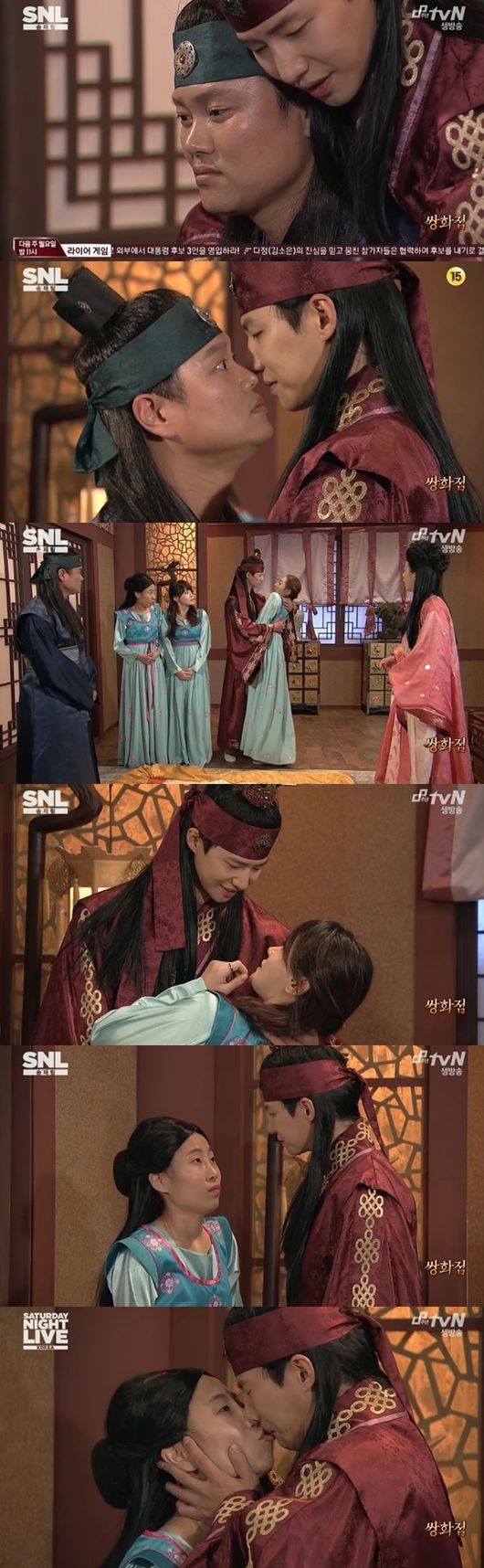 송재림은 영화를 패러디한 콩트 '쌍화점'에서 김민교와 끈적한 연기도 서슴지 않았다. 이 모습에 "남색을 즐긴다는 소문이 있다"는 중전(안영미 분)의 말에 궁녀들을 상대로 스킨십을 선보였다.