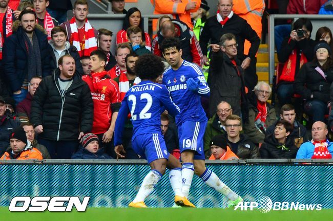 첼시는 8일(이하 한국시간) 영국 리버풀 안 필드서 열린 2014-2015시즌 잉글랜드 프리미어리그(EPL) 11라운드 원정 경기서 리버풀에 2-1 역전 드라마를 써냈다. 전반 9분 엠레 찬에게 선제골을 내줬으나 게리 케이힐이 5분 만에 동점골을 넣었고, 후반 22분 디에구 코스타의 역전골을 묶어 역전승했다.