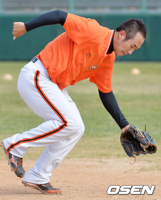 9일 오전 일본 오키나와 고친다 구장에서 한화 이글스 2014 마무리 캠프가 진행됐다. 장민재가 아메리칸 펑고 훈련을 하고 있다.