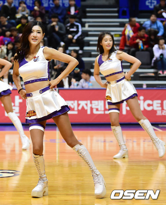 치어리더들이 힘찬 응원을 펼치고 있다.