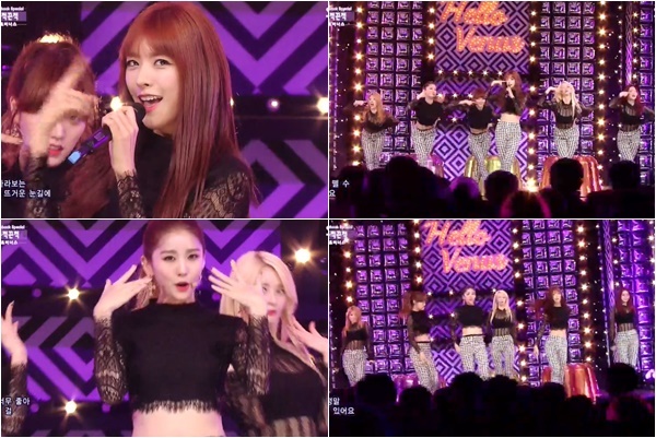 이날 헬로비너스는 몸에 착 달라붙는 옷을 입고 골반 라인을 강조하는 안무로 눈길을 끌었다.