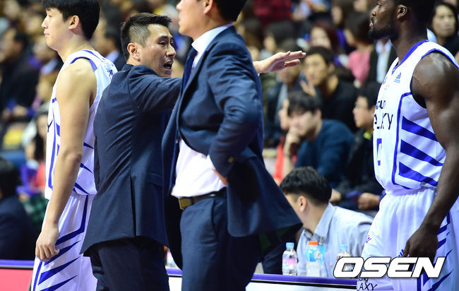 2쿼터 삼성 이상민 감독이 선수들에게 작전을 지시하고 있다.