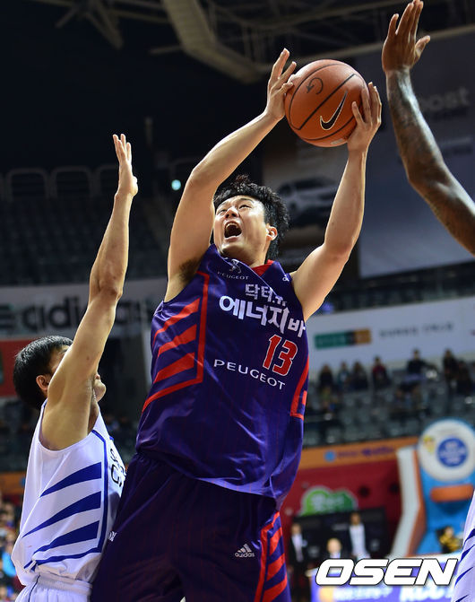 2쿼터 오리온스 김동욱이 골밑슛을 시도하고 있다.