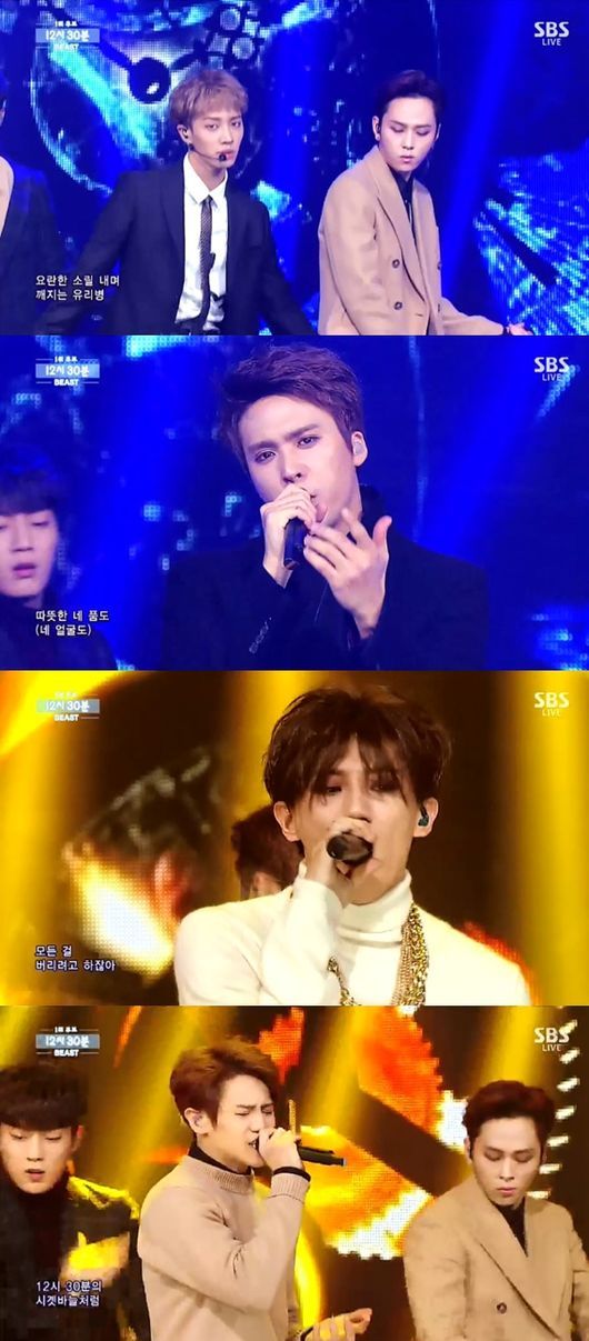 비스트는 9일 오후 방송된 SBS '인기가요'에 출연해 '12시 30분‘의 무대를 꾸몄다.