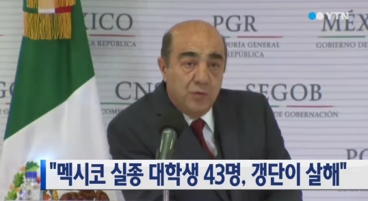 지난 9월 멕시코 게레로주 이괄라시에서 시위를 벌이다 실종된 교육대 학생 43명이 갱단에 살해된 것으로 보인다는 검찰 수사결과가 나왔다.