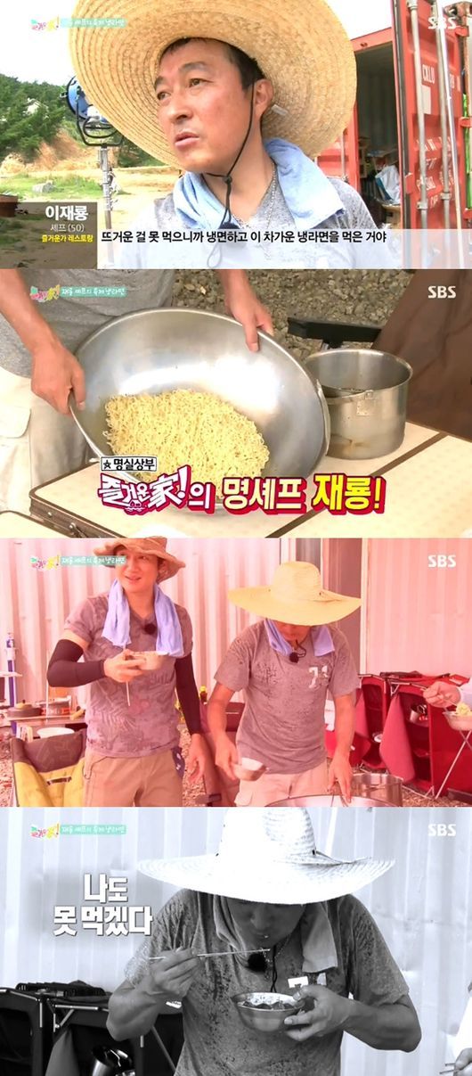 이날 이재룡은 배고파하는 멤버들을 위해 더위를 식할 냉라면을 만들었다. 그는 자신만만해 하며 멤버들에게 냉라면을 권했지만 맛을 본 멤버들은 당황한 표정을 감추지 못하며 난감해 했다.