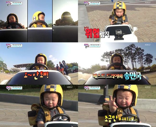 이날 방송에서 송일국과 삼둥이는 뛰뛰(자동차)를 타고 놀았고 특히 민국은 차를 타고 가면서 옆에 있는 VJ들에게 "조심하세요. 다들 미안. 비켜주세요"라는 말을 하는 등 좋은 매너를 선보였다.