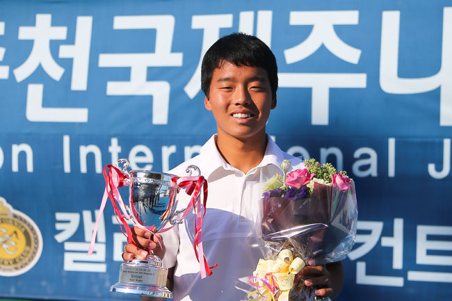 정윤성(양명고, 주니어 15위)이 2014 이덕희배 춘천 국제주니어 테니스대회 남자단식 정상에 올랐다.