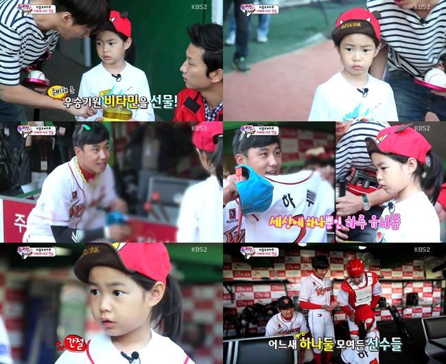 하루는 9일 오후 방송된 KBS 2TV 예능프로그램 '해피선데이-슈퍼맨이 돌아왔다(이하 '슈퍼맨')'에서 야구 선수들을 만났다.