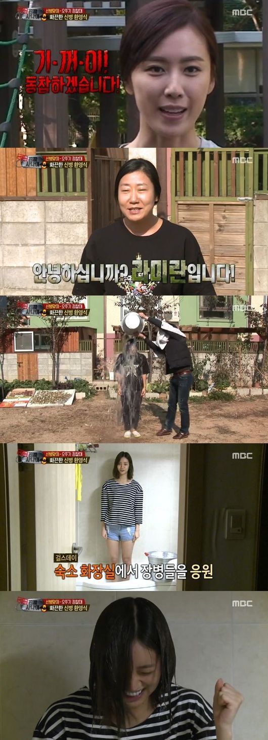 홍은희, 라미란, 혜리가 신병인 유준상, 임형준, 헨리의 지목으로 아이스버킷을 실행했다.