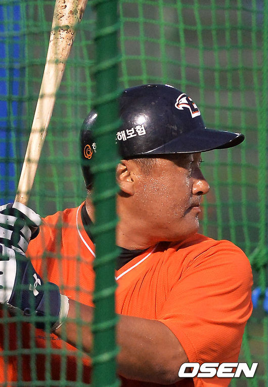 9일 일본 오키나와 고친다 구장에서 한화 이글스 2014 마무리 캠프가 진행됐다. 조인성이 타격훈련을 하고 있다.