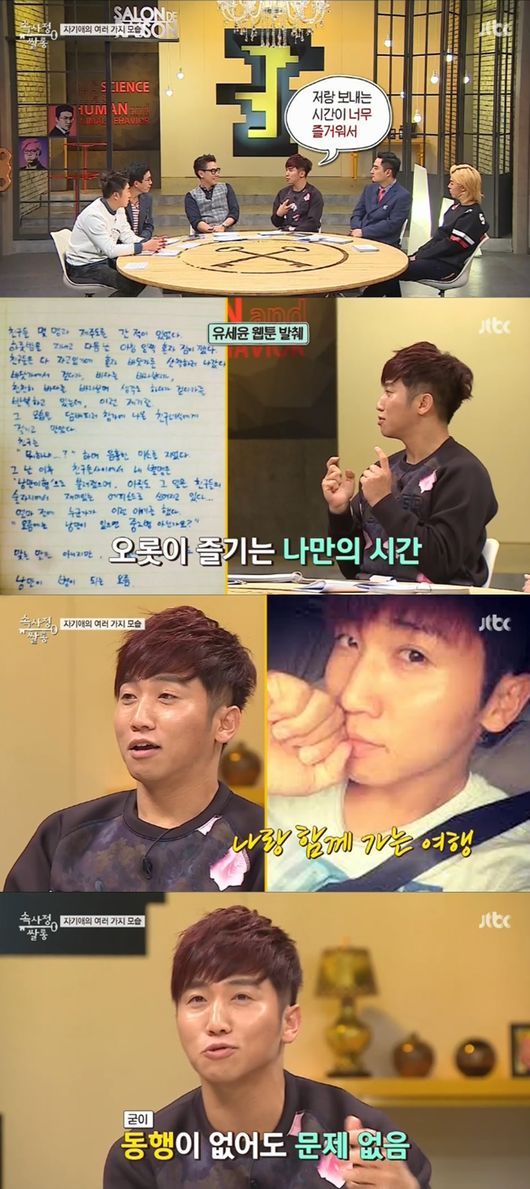 유세윤은 "난 나만큼 자기애가 강한 사람 없는 것 같다. 나랑 보내는 시간이 즐겁다. 혼자 기차 타고 음악 들으면서 가는데 정말 좋았다"고 말했다.