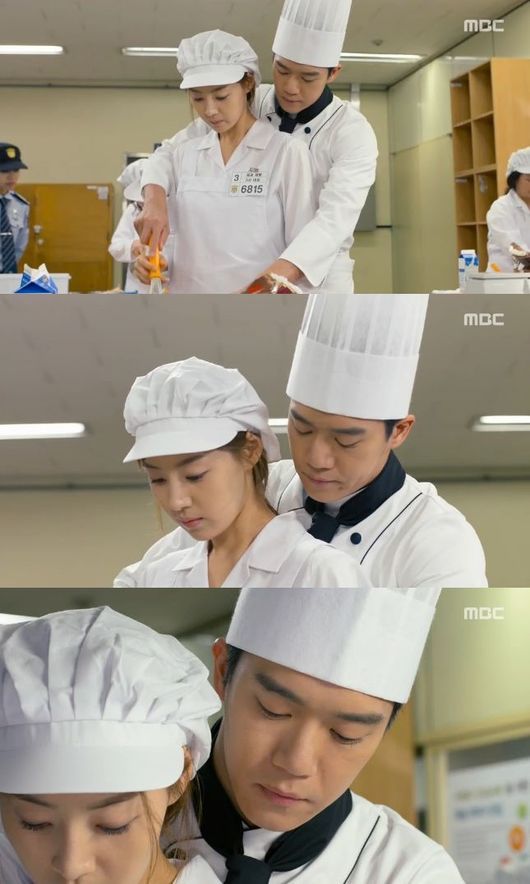 9일 오후 10시 방송된 MBC '전설의 마녀'에는 문수인(한지혜 분)이 제빵 기술을 가르쳐 주기 위해 교도소에 온 남우석(하석진 분)과 설렌 스킨십을 하게되는 모습이 담겼다.