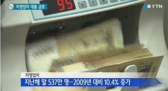 자영업자 대출은 지난 2010년 말 94조원에서 2011년 말 104조원, 2012년 말 114조원, 2013년 말 124조원까지 급증했다.