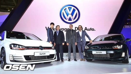 골프를 선보이고 있는 2014년부산 모터쇼 폭스바겐 부스.